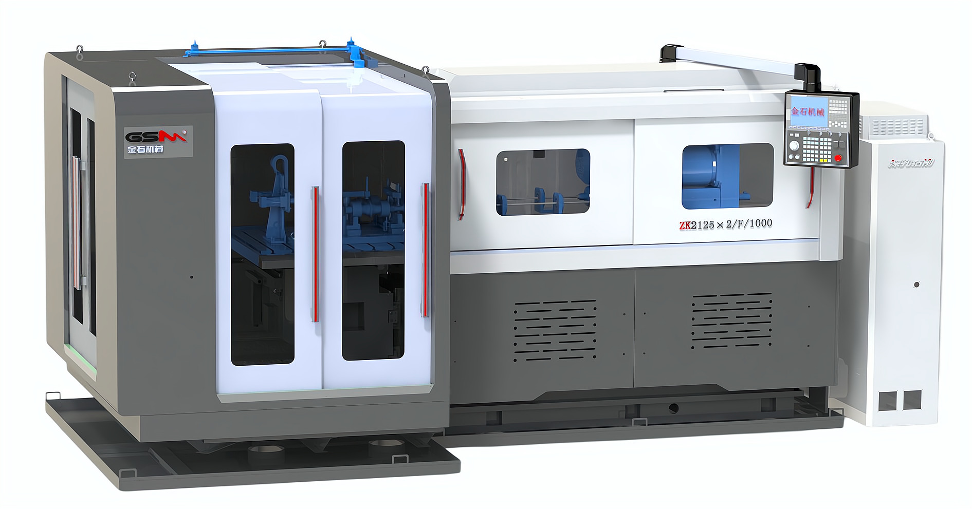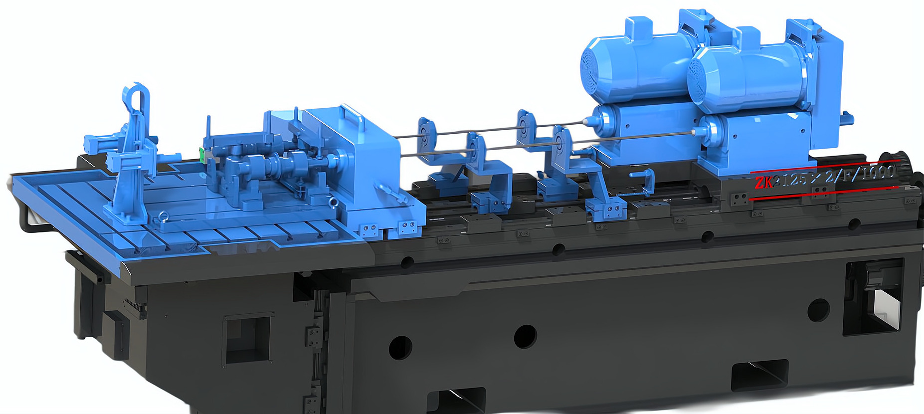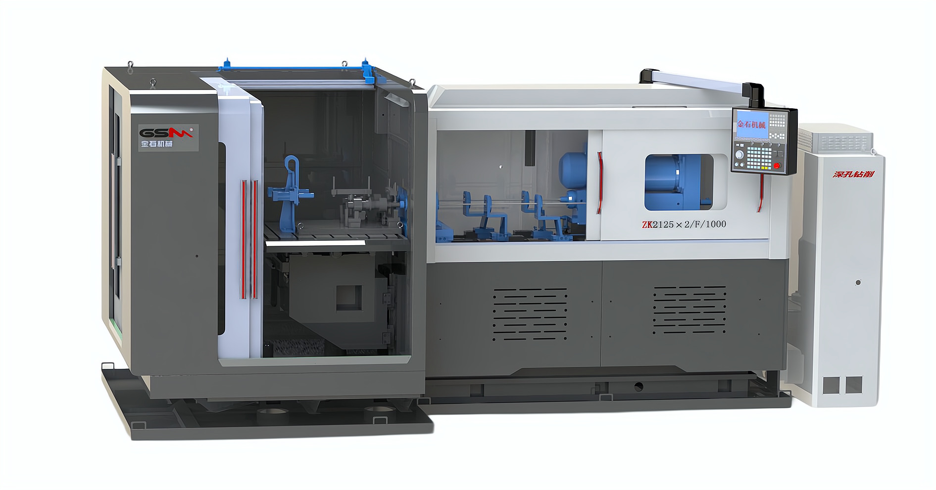 簡要說明:機床主機分為左右兩體。左體為升降+水平移動工作臺。右體為鉆桿床身、鉆桿主軸箱、導(dǎo)向排屑箱、鉆桿進給系統(tǒng)。左右兩體共同安裝在高強度底座上。高壓冷卻系統(tǒng)與機床主機平行放置。整體結(jié)構(gòu)緊湊,占地面積小。操作方便。