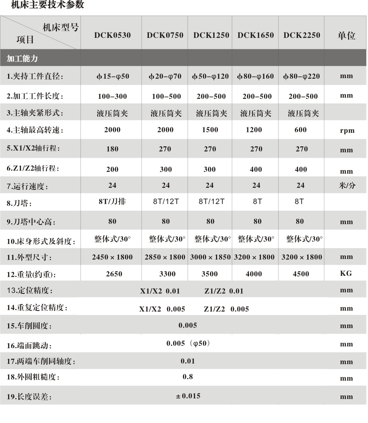 簡(jiǎn)要說(shuō)明:DCK0750雙頭車床采用整體30°斜背式高剛性鑄件床身; 工件主軸箱位于床身中部,采用中空雙筒夾液壓夾緊工件,變頻電機(jī)皮帶傳動(dòng)帶動(dòng)主軸旋轉(zhuǎn); 左右刀架為伺服刀塔,分布于主軸箱兩側(cè),為對(duì)稱結(jié)構(gòu); 左右刀架均采用X、Z兩軸驅(qū)動(dòng),X軸、Z軸為滾珠絲桿與伺服電機(jī)直聯(lián)。 該機(jī)控制部分采用臺(tái)灣新代數(shù)控系統(tǒng),可實(shí)現(xiàn)多任務(wù)控制,兩側(cè)刀塔可獨(dú)立工作,互不干擾。 該機(jī)具有高效、高精度、高柔性、節(jié)能環(huán)保等特點(diǎn),便于自動(dòng)化連線,可實(shí)現(xiàn)一人多機(jī)作業(yè),大幅降低制造成本。