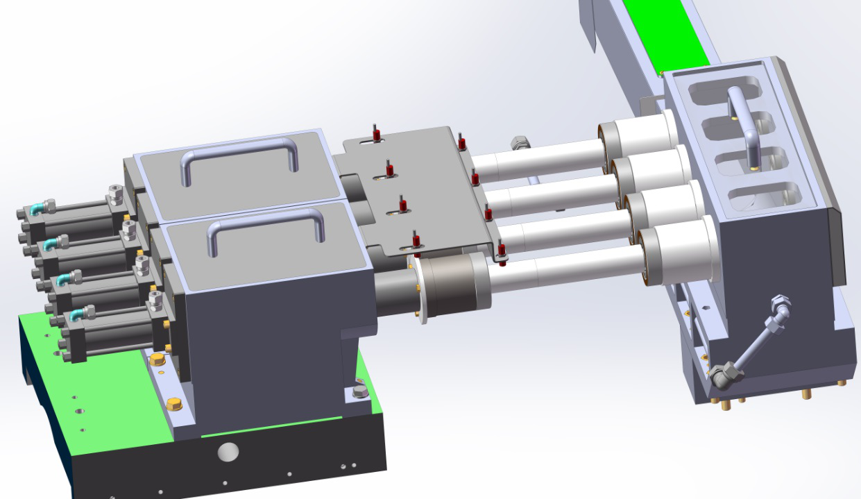 雙筒夾的方式,可以直接夾緊活塞銷外圓,定位準確可靠。另外,還非常適和傳送帶自動傳送工件的自動化要求。